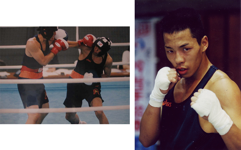 16歳でボクシングを始め、国体は通算で6度出場、アテネ五輪の候補選手にもなった。